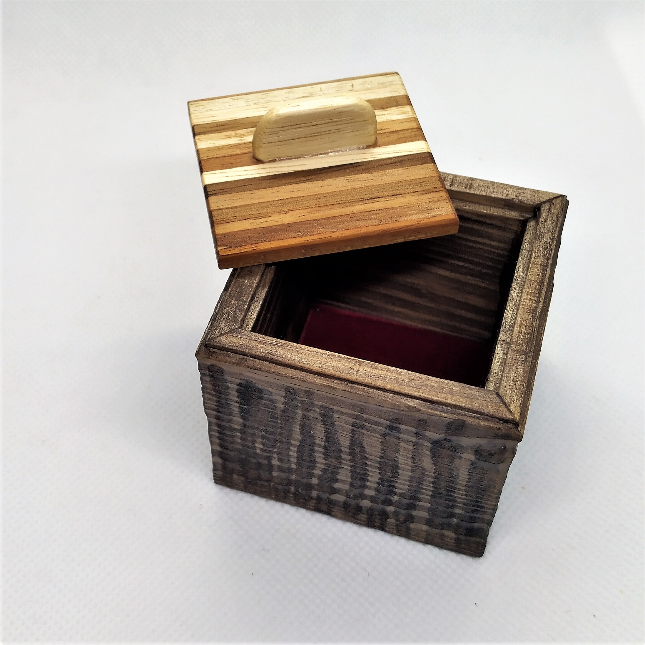 Tässä korurasiassa on paljon oppimiani erikoisuuksia: raidallinen laminoitu kansi, kaiverretut sivut, pieni otin, ja ”Matt Kenney- kansi”.